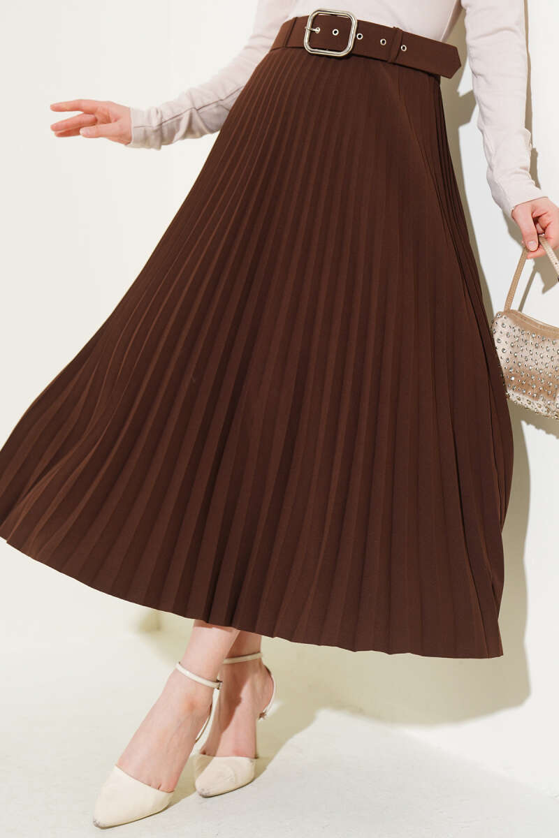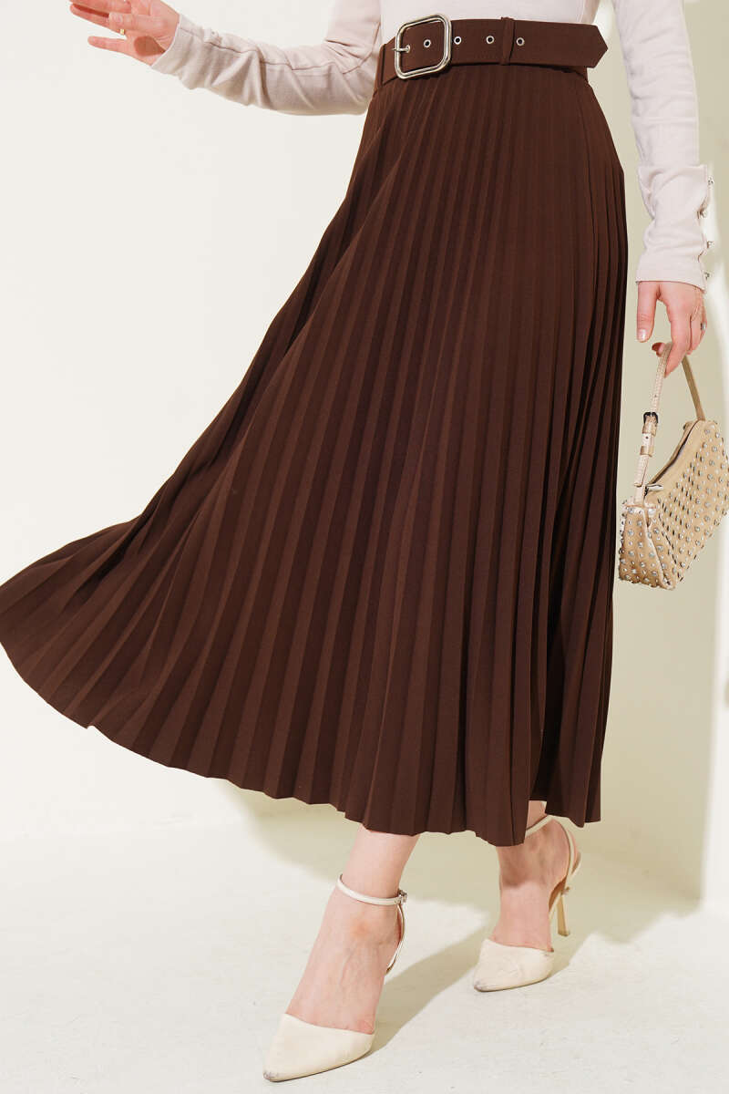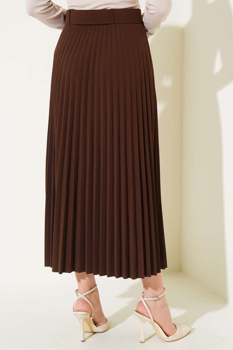 Kemer Aksesuarlı Ekoseli Etek Füme