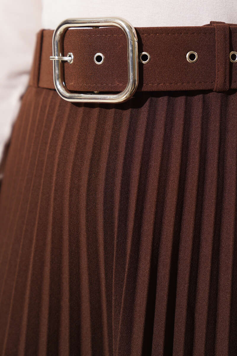 Kemer Aksesuarlı Ekoseli Etek Haki