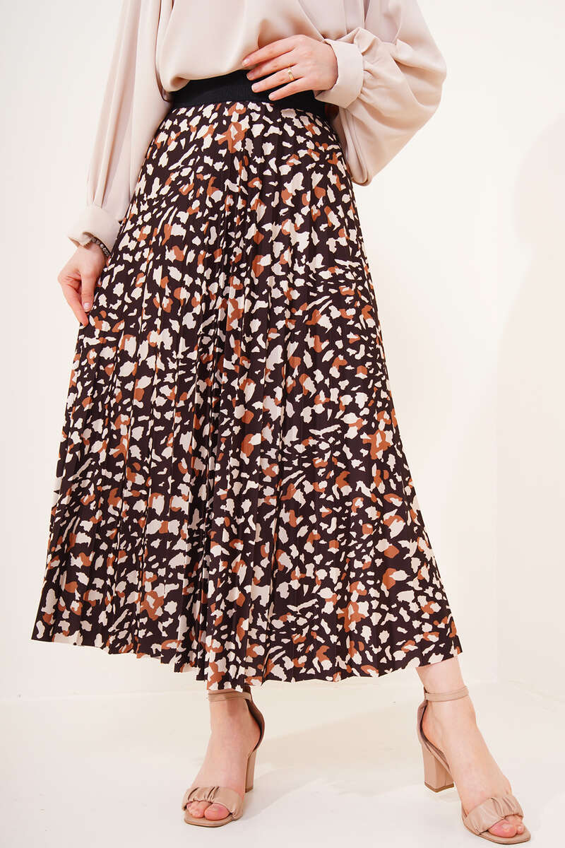 Yeni sezon piliseli eteğimiz leopar desenleriyle şık bir görünüm kazanmanıza olanak sağlamaktadır. Efsane leopar desenli eteğimizin beli lastiklidir. İçi astarsız olan eteğimiz iç göstermemktedir.