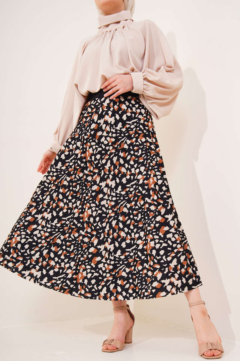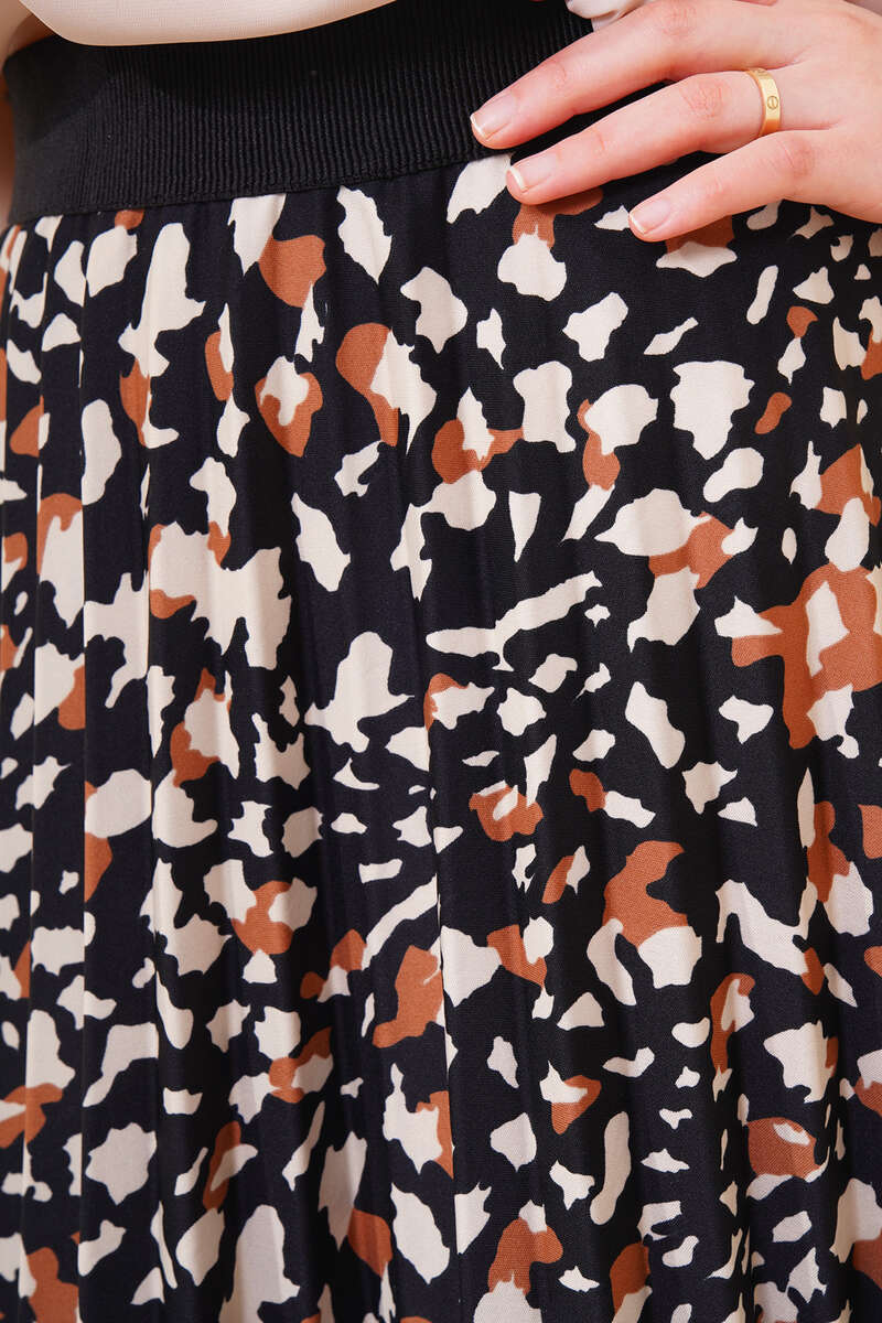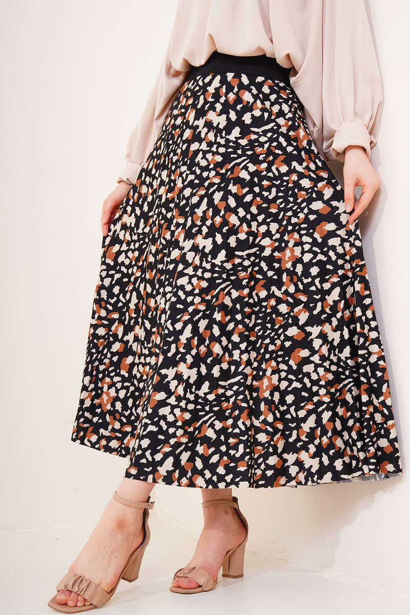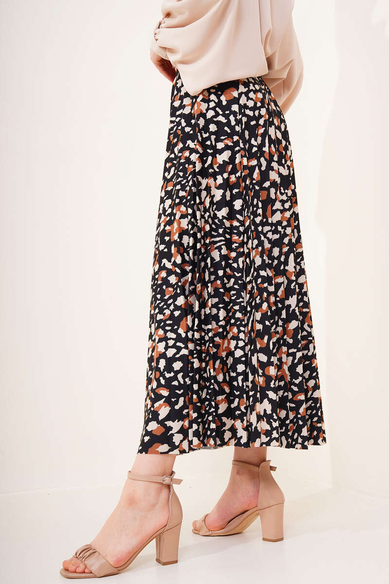 Yeni sezonpiliseli eteğimiz leopar desenleriyle şık bir görünüm kazanmanıza olanak sağlamaktadır. Efsane leopar desenli eteğimizin beli lastiklidir. İçi astarsız olan eteğimiz iç göstermemktedir.
