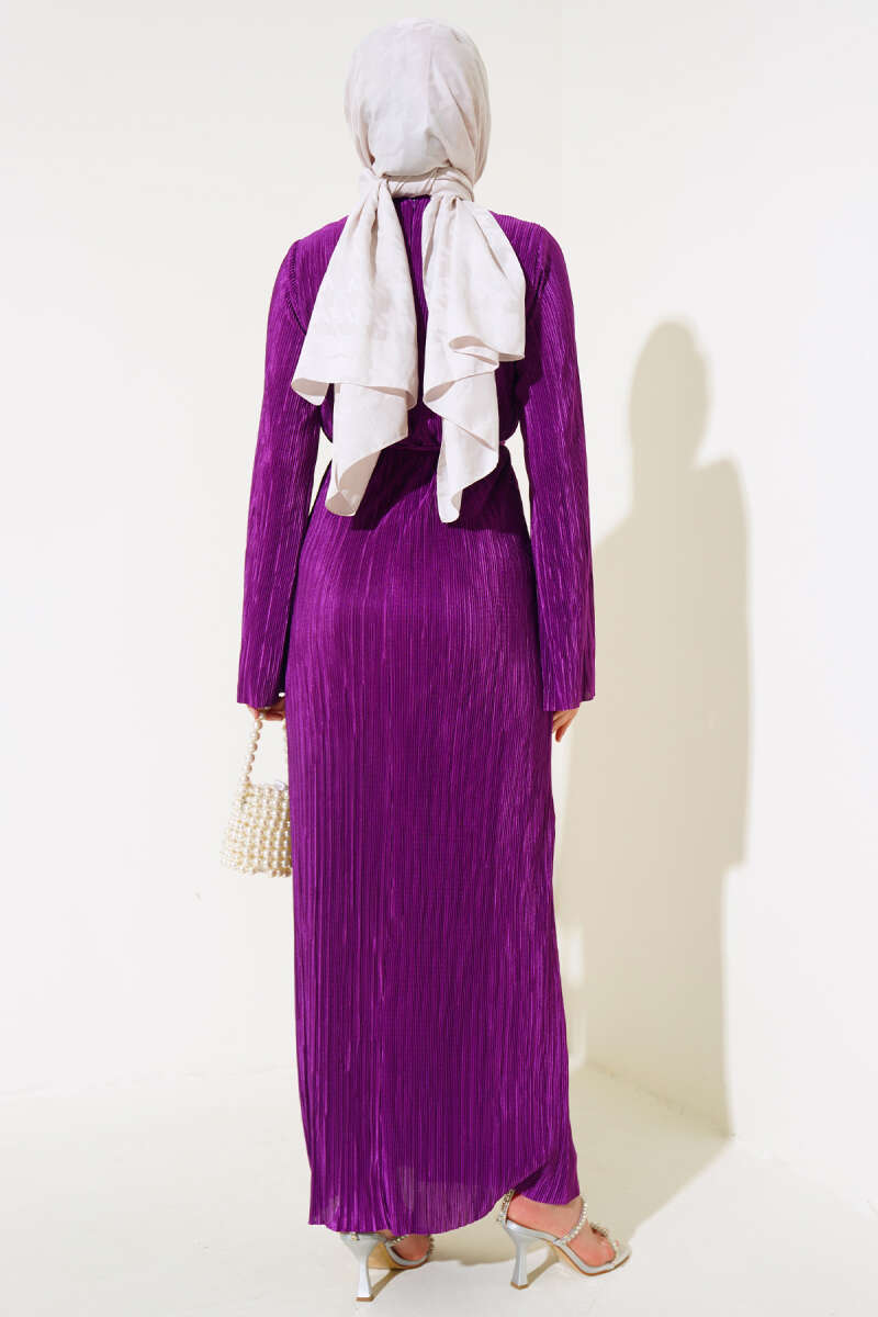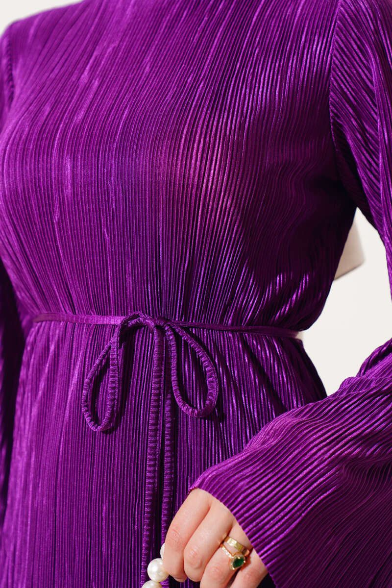 Şerit Ajur Desen Triko Elbise Zümrüt Yeşili