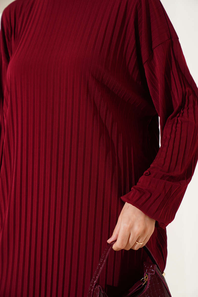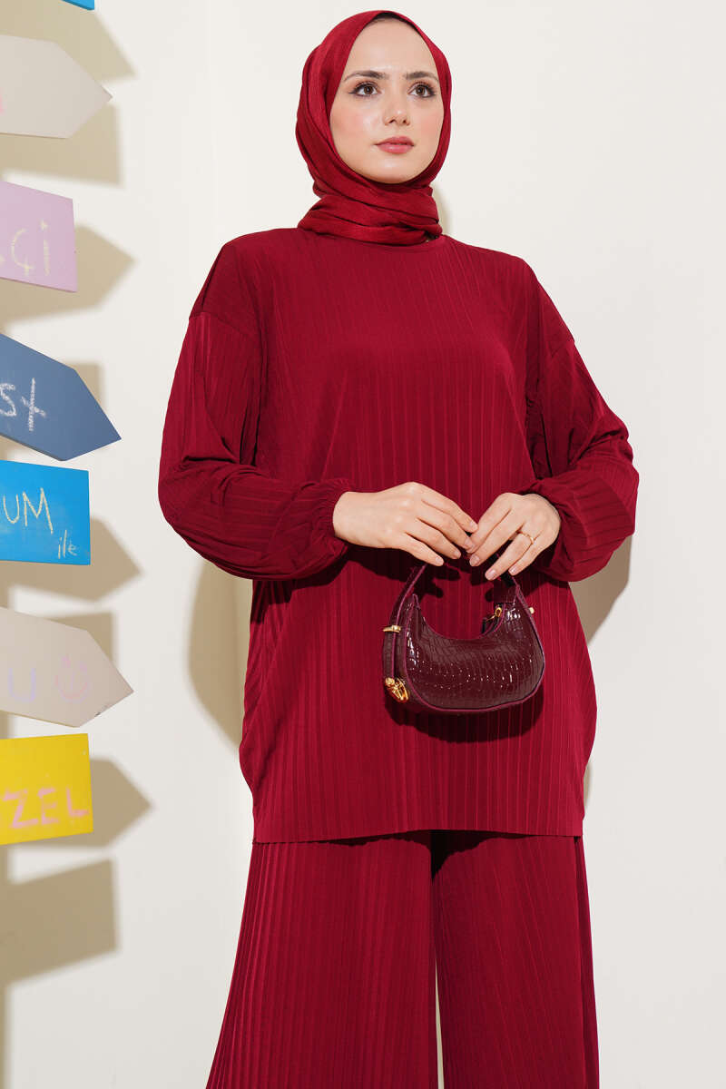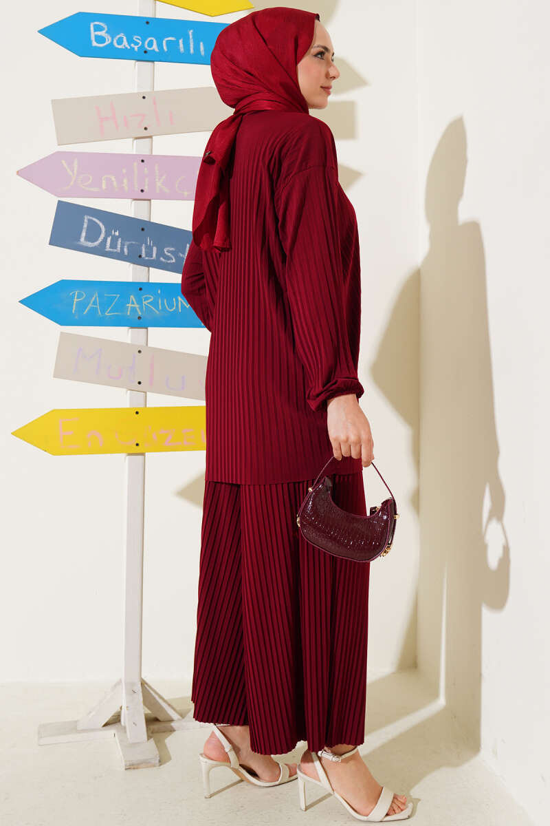 Asimetrik Kesim Bisiklet Yaka İkili Takım Bordo