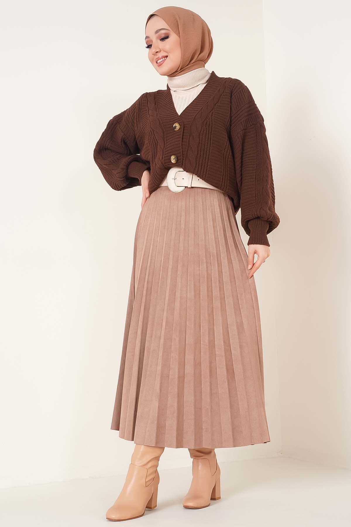 Yeni sezon eteğimiz harika tasarımıyla sizler için geldi. Eteğimiz süet bir yapıya sahiptir ve piliselidir. İçi astarsızdır. Oldukça şık ve rahat bir yapıya sahiptir. Sezonun en trend parçaları arasında yerini almaktadır. Günlük kombinlerinizde rahatlıkla tercih edebilirsiniz. Farklı renkleri mevcuttur.