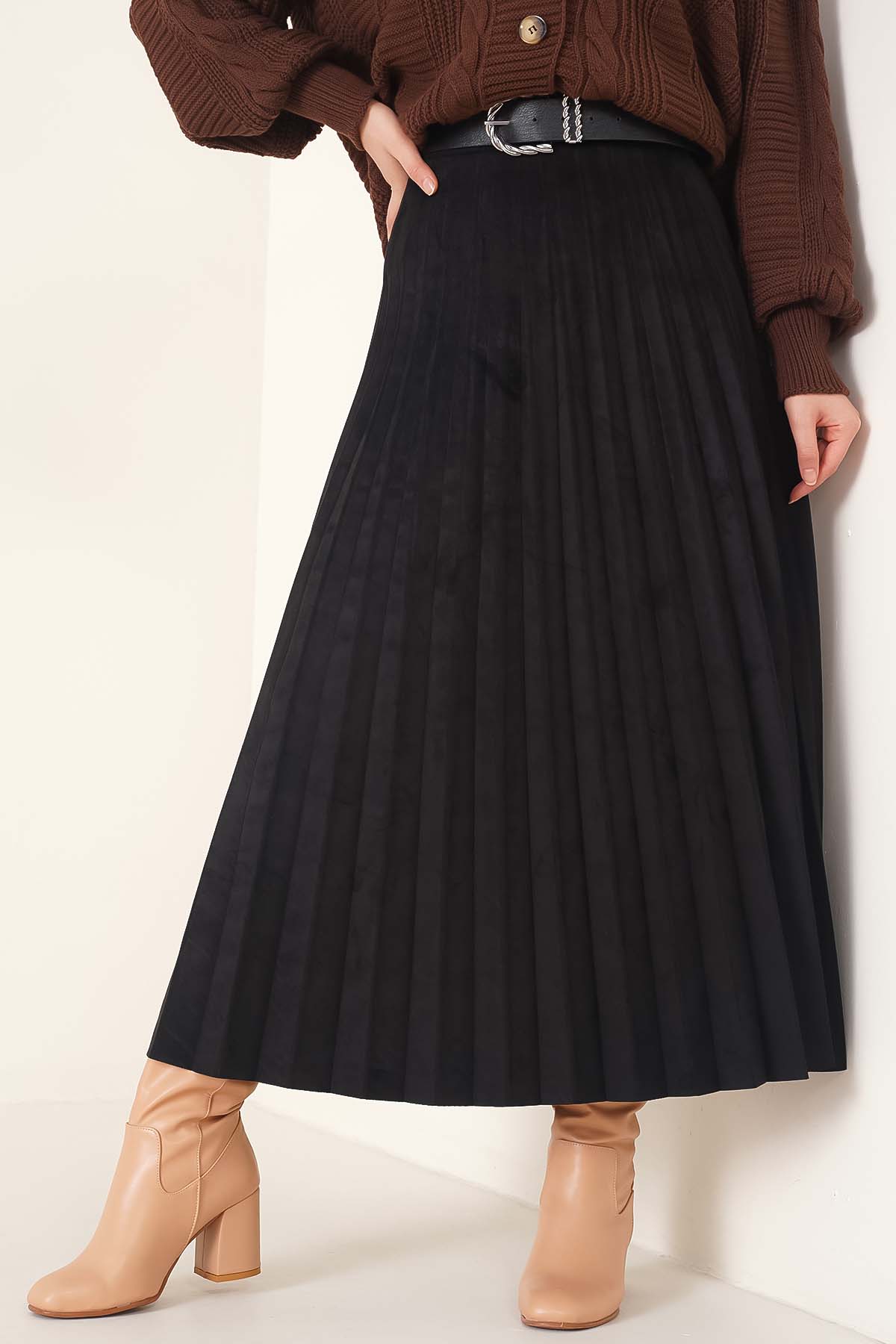 Ürün BilgisiBoy : 90 cmBel : 70 cmYeni sezon eteğimiz harika tasarımıyla sizler için geldi. Eteğimiz süet bir yapıya sahiptir ve piliselidir. İçi astarsızdır. Oldukça şık ve rahat bir yapıya sahiptir. Sezonun en trend parçaları arasında yerini almaktadır. Günlük kombinlerinizde rahatlıkla tercih edebilirsiniz. Farklı renkleri mevcuttur.KEMER AKSESUAR OLARAK KULLANILMIŞTIR!Ürünümüz normal kalıptır.Genel olarak tercih ettiğiniz bedeni satın alabilirsiniz.