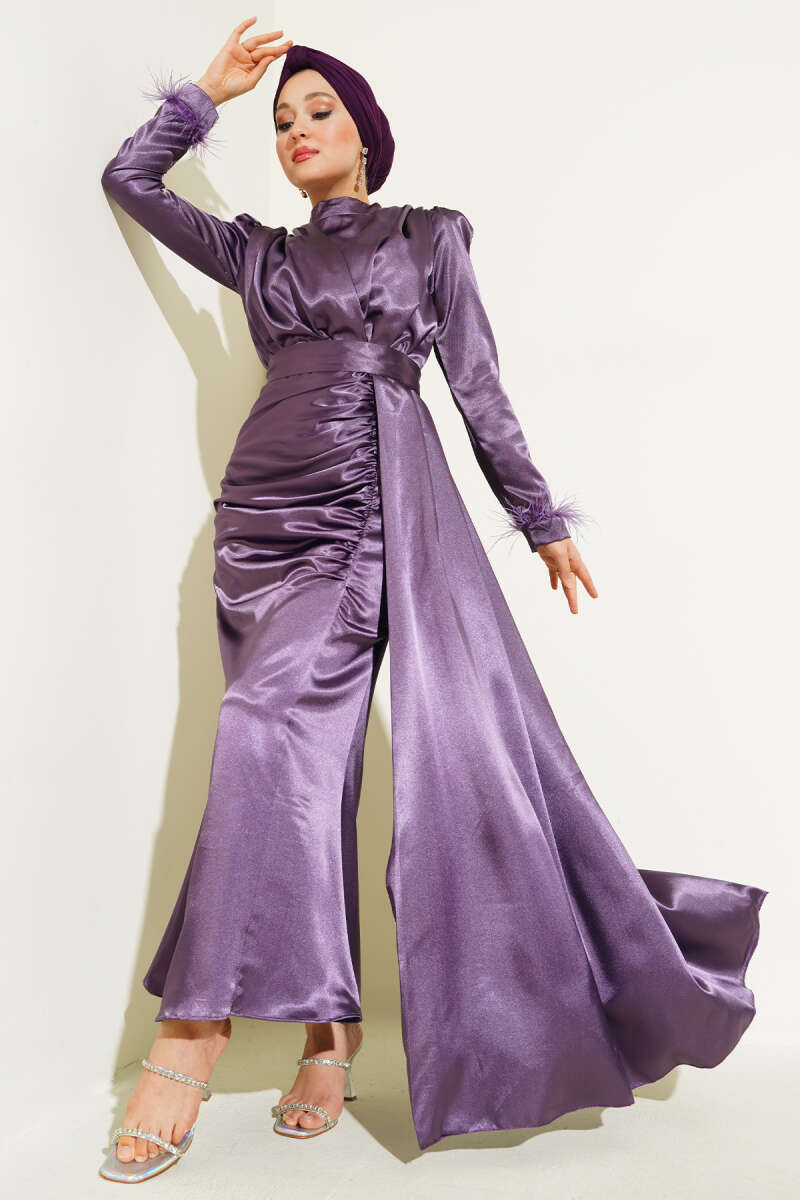 Önü Düğmeli Kat Kat Basic Elbise Vizon