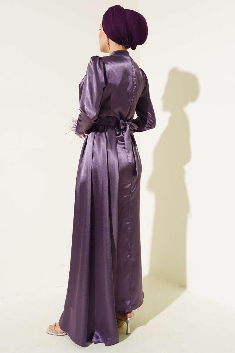 Kuşaklı Dik Fitilli Kaşe Elbise Kahve