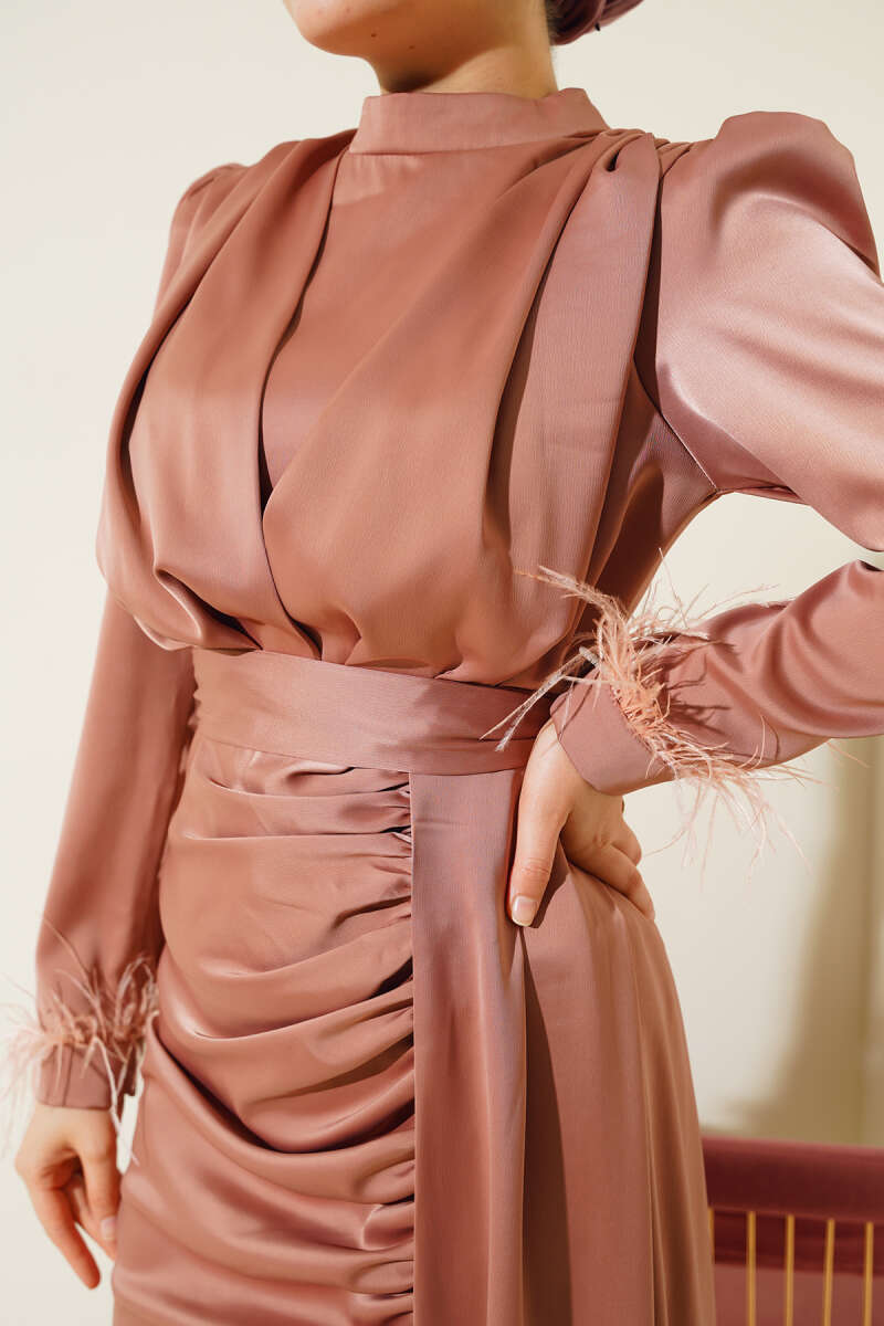 Düğmeli Pelerinli Triko Elbise Takım Vizon