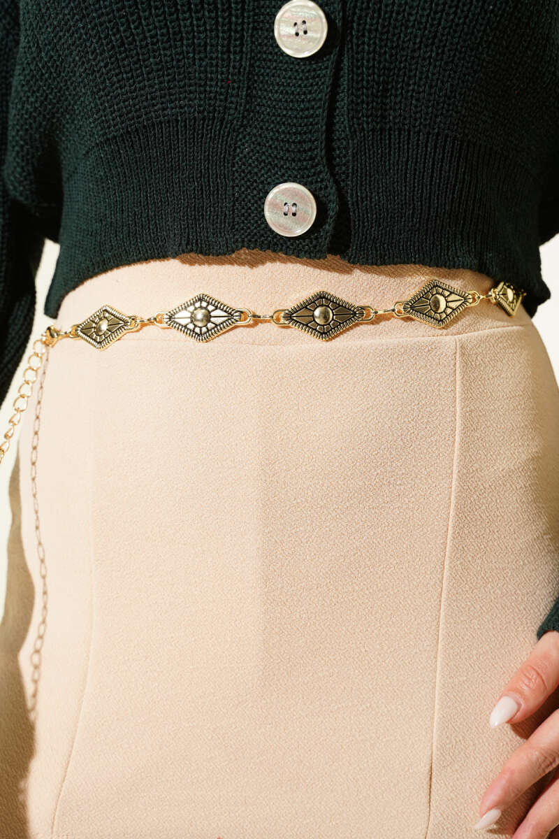 Yuvarlak Dekor Metal Zincir Kemer Gold