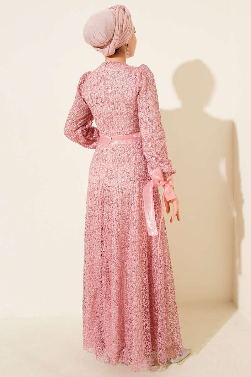 Pırıltı Pullu Abiye Elbise Magenta