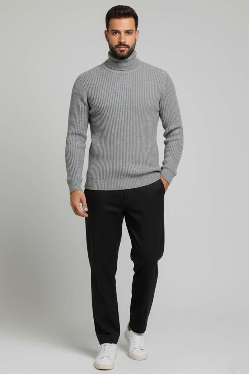 Waffle Kumaş Balıkçı Yaka Erkek Kazak Siyah
