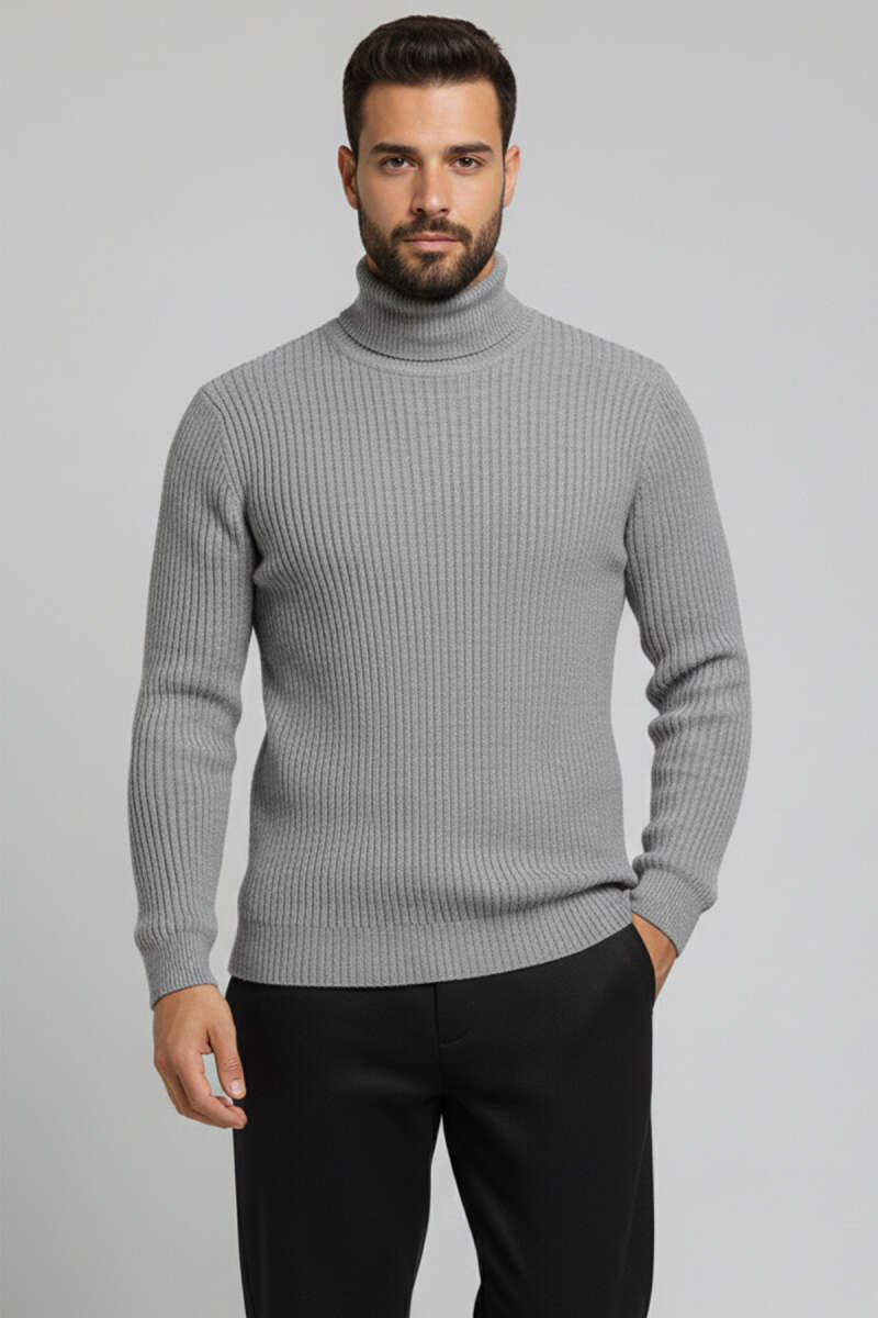 Yarım Fermuar Boğazlı Kazak Gri