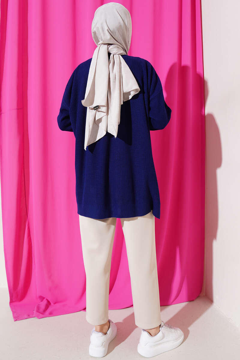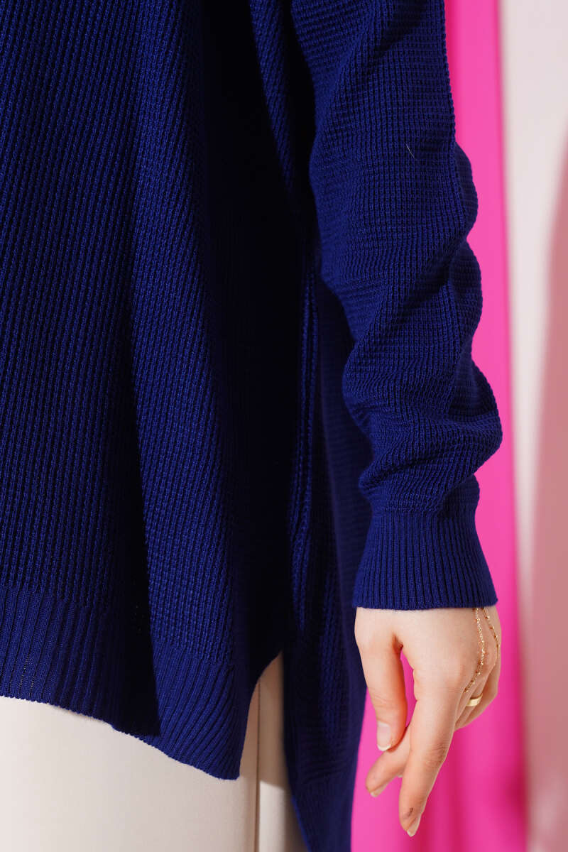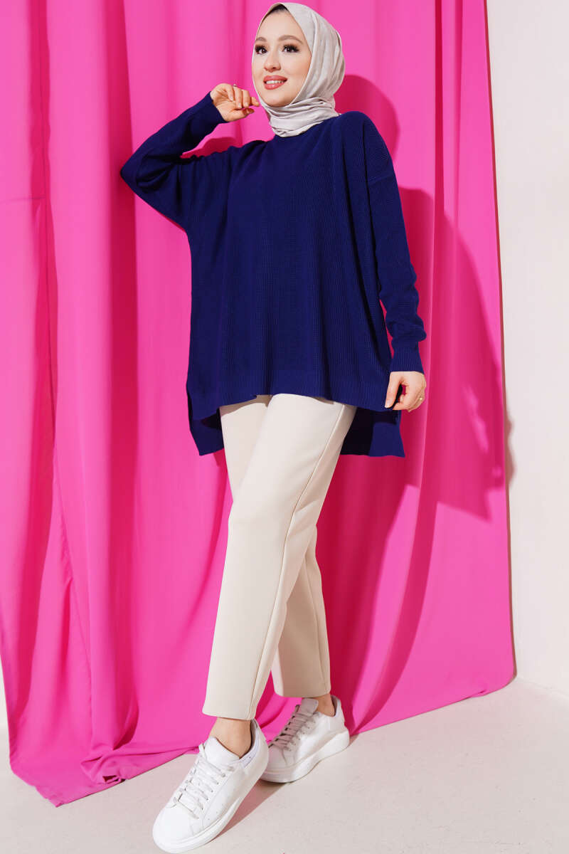 Ribana Görünümlü Triko Tunik İndigo