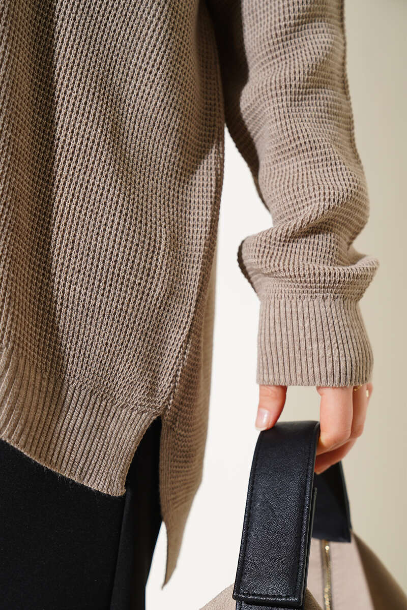 Yatay Çizgi Detaylı Basic Triko Tunik Vizon