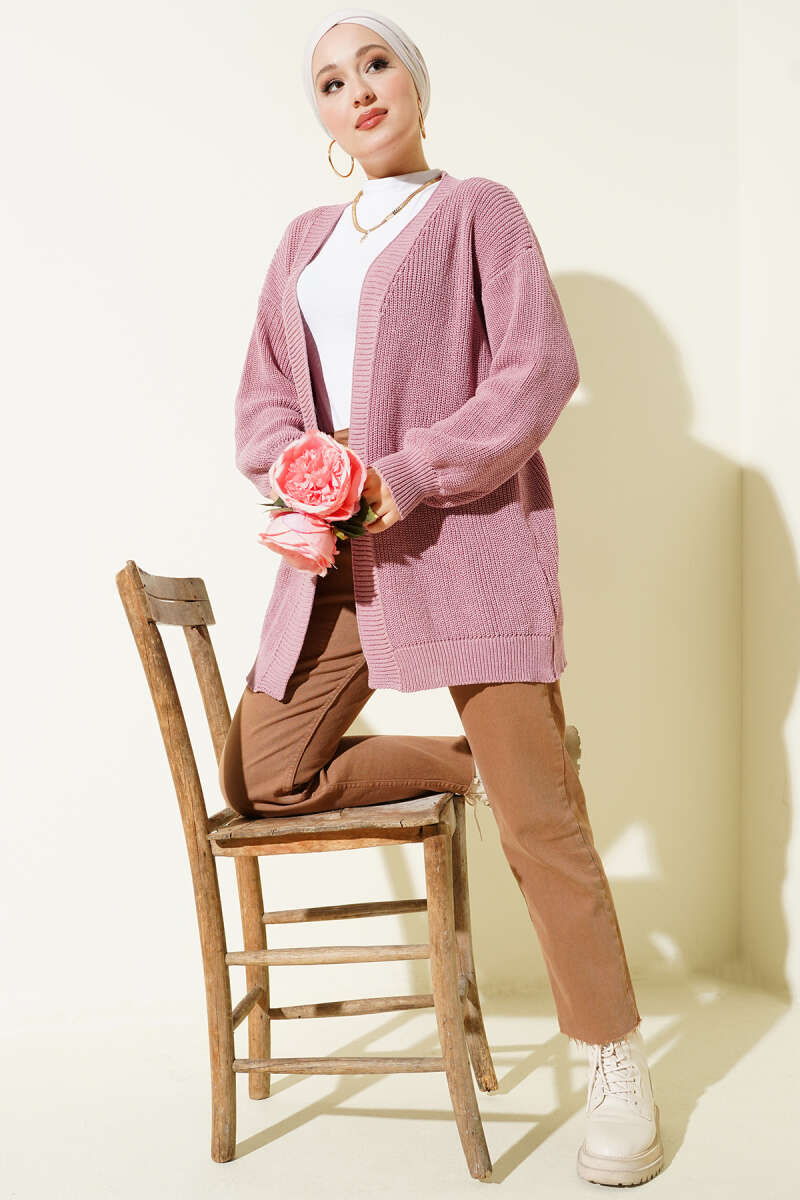 Pirinç Örgü Basic Triko Hırka Zümrüt