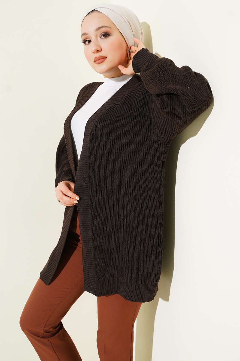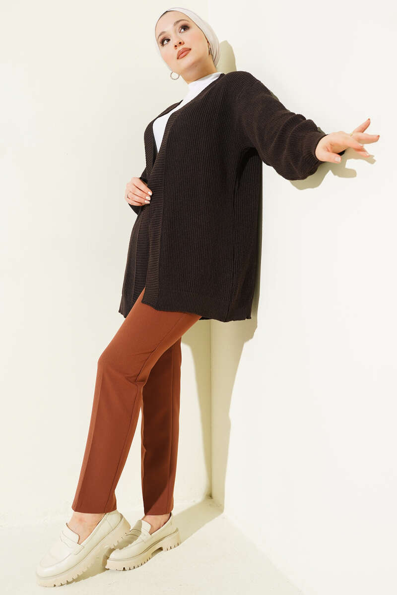 Çift Cepli Düğmeli Triko Hırka Kahve