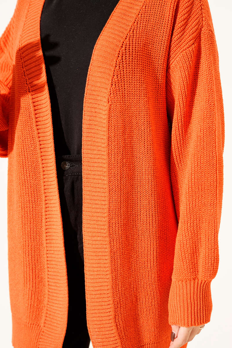 Pirinç Örgü Basic Triko Hırka Oranj