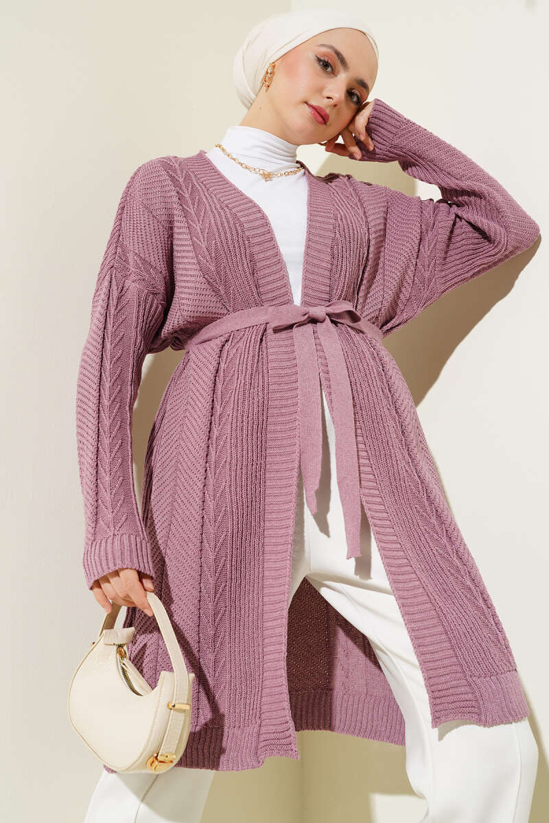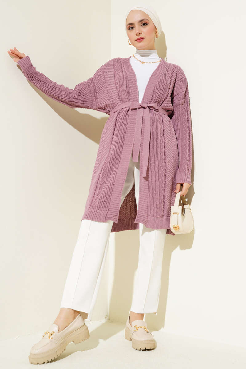 Pirinç Örgü Basic Triko Hırka Nar Çiçeği