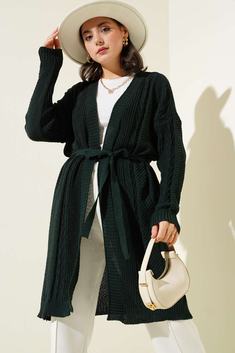 Çiçek Motifli Düğmeli Triko Hırka Siyah