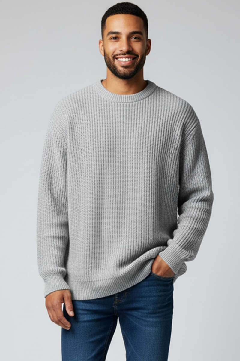 Yıpratma Detaylı Triko Erkek Kazak Gri