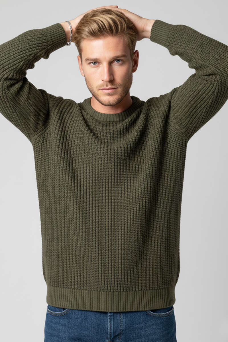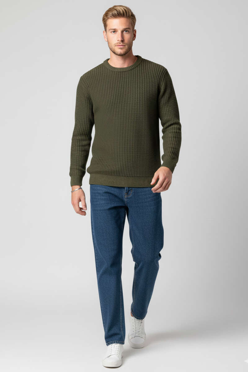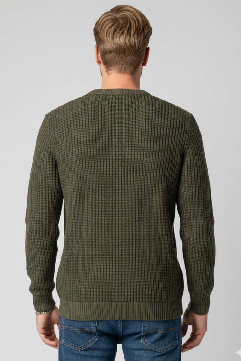 Pirinç Örgü Erkek Triko Kazak Haki