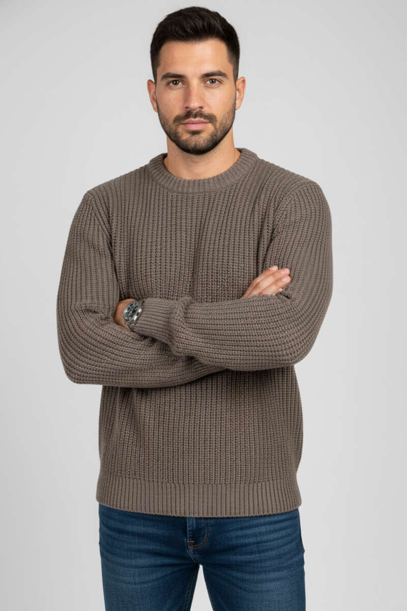 Pirinç Örgü Erkek Triko Kazak Bej