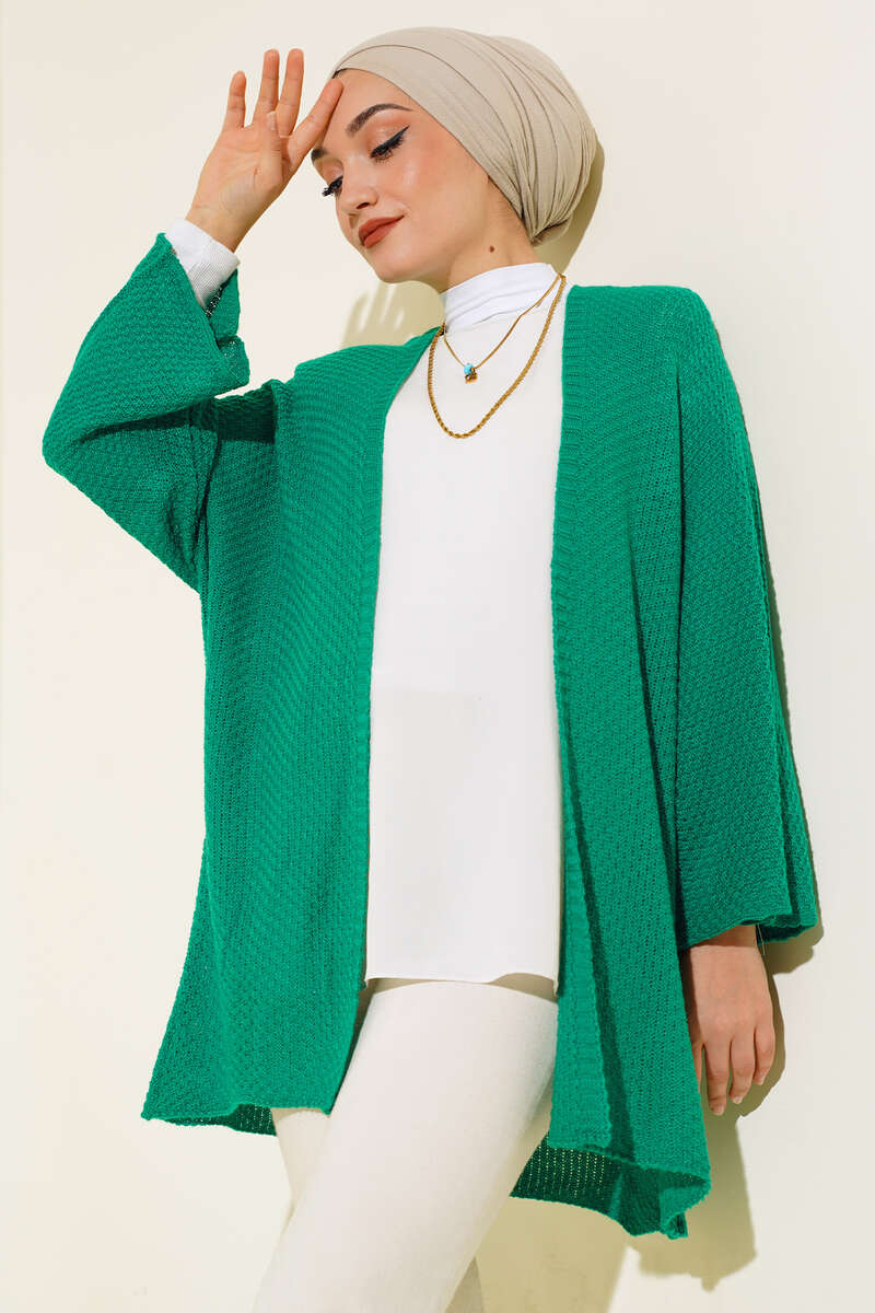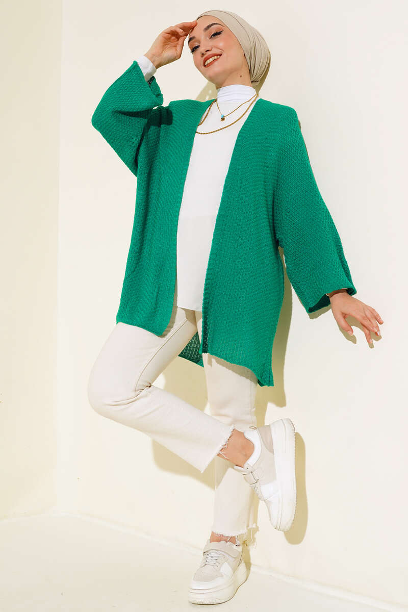 Sezonun çarpıcı parçası olan hırkamızı çok beğeneceksiniz. Hırkamız pirinç örgü modeldir. Yarasa koldur. Hırkamız sade ve sportif tarzıyla kombinlerinizin favori parçası olacaktır. Renk seçenekleri mevcuttur.