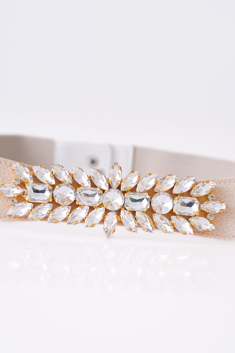 Pırlanta Taş Süslemeli Bej Lastikli Kemer
