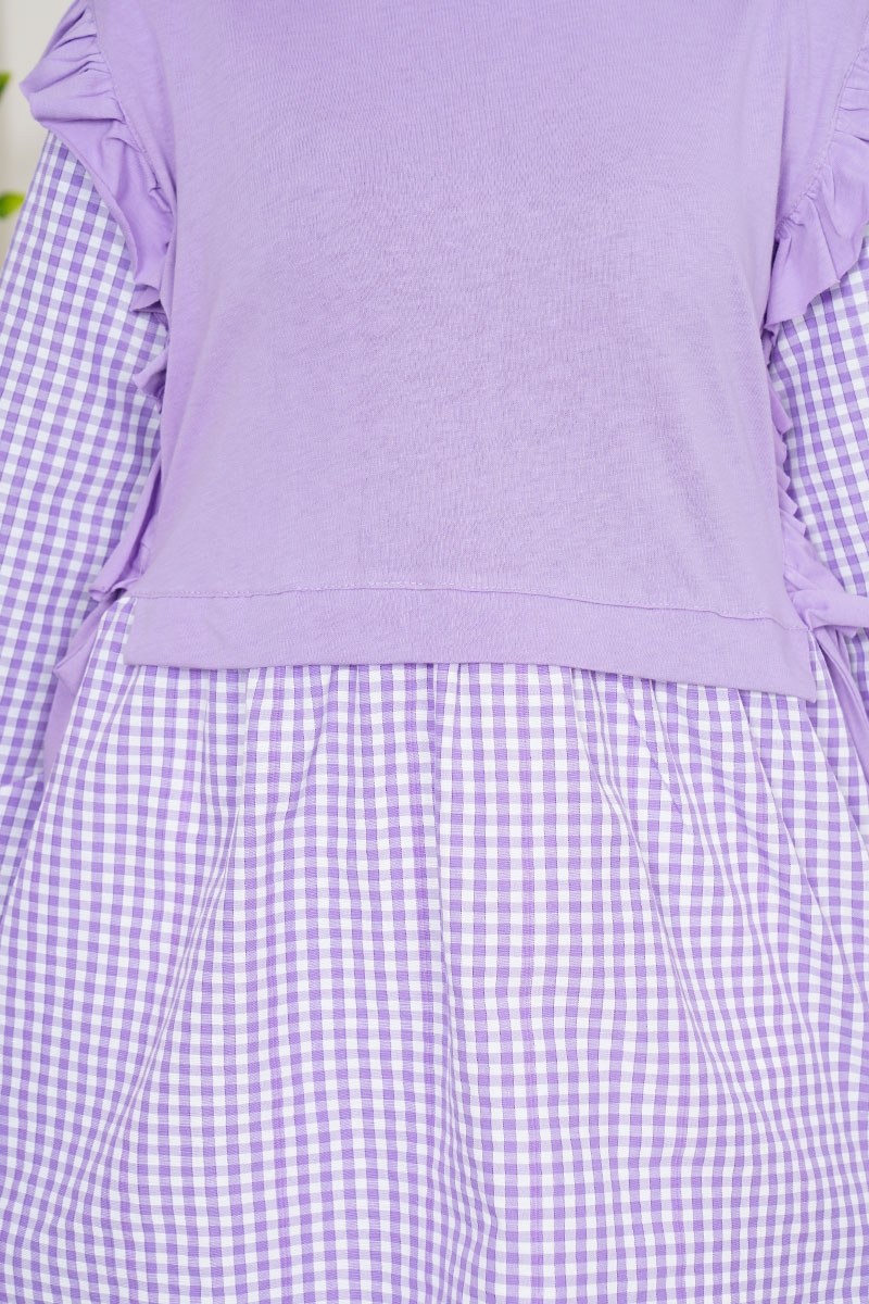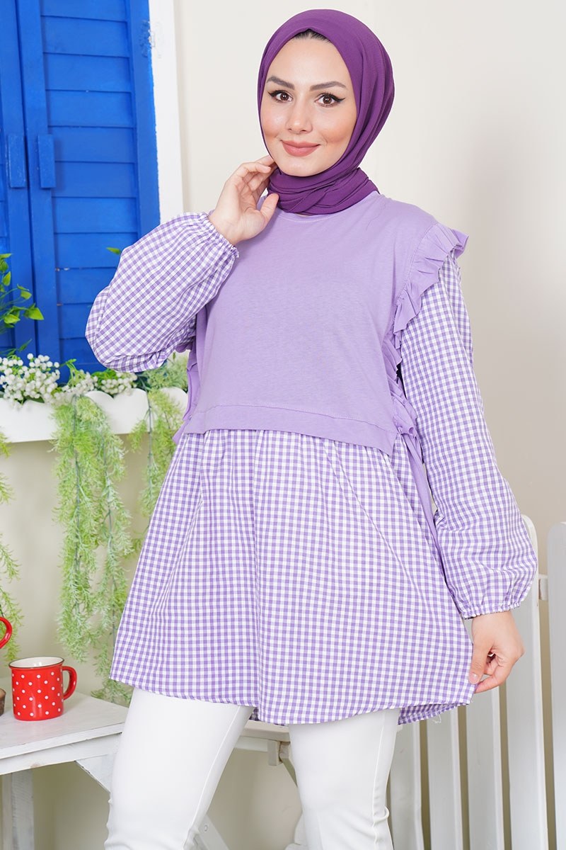 Pitikareli Yanları Büzgü Detay Lila Tunik