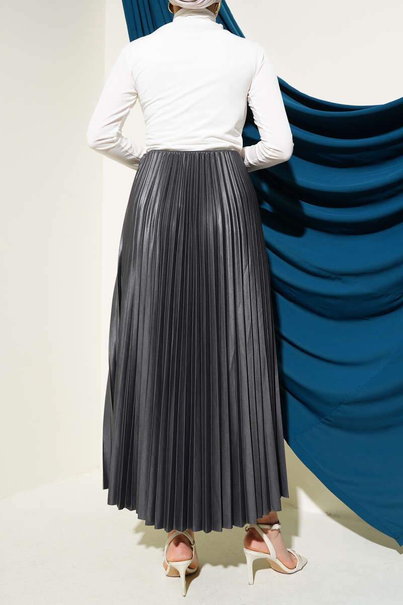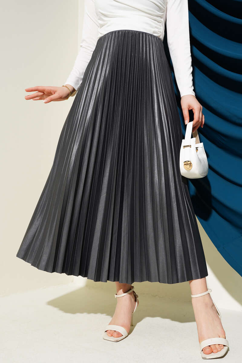 Bel Lastikli Ekoseli Scuba Etek Siyah