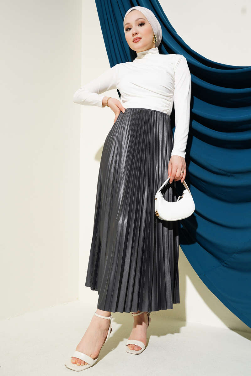 Pötikareli Yanları Büzgü Detay Siyah Tunik