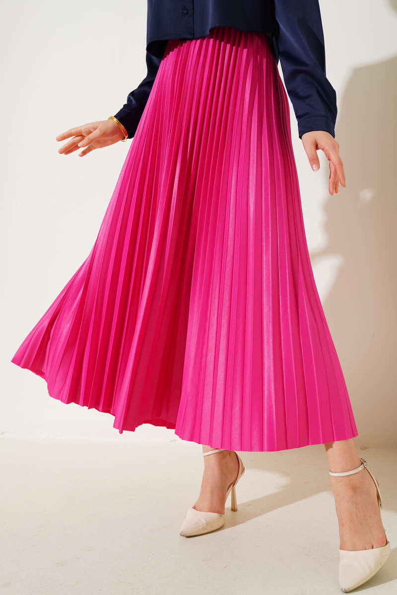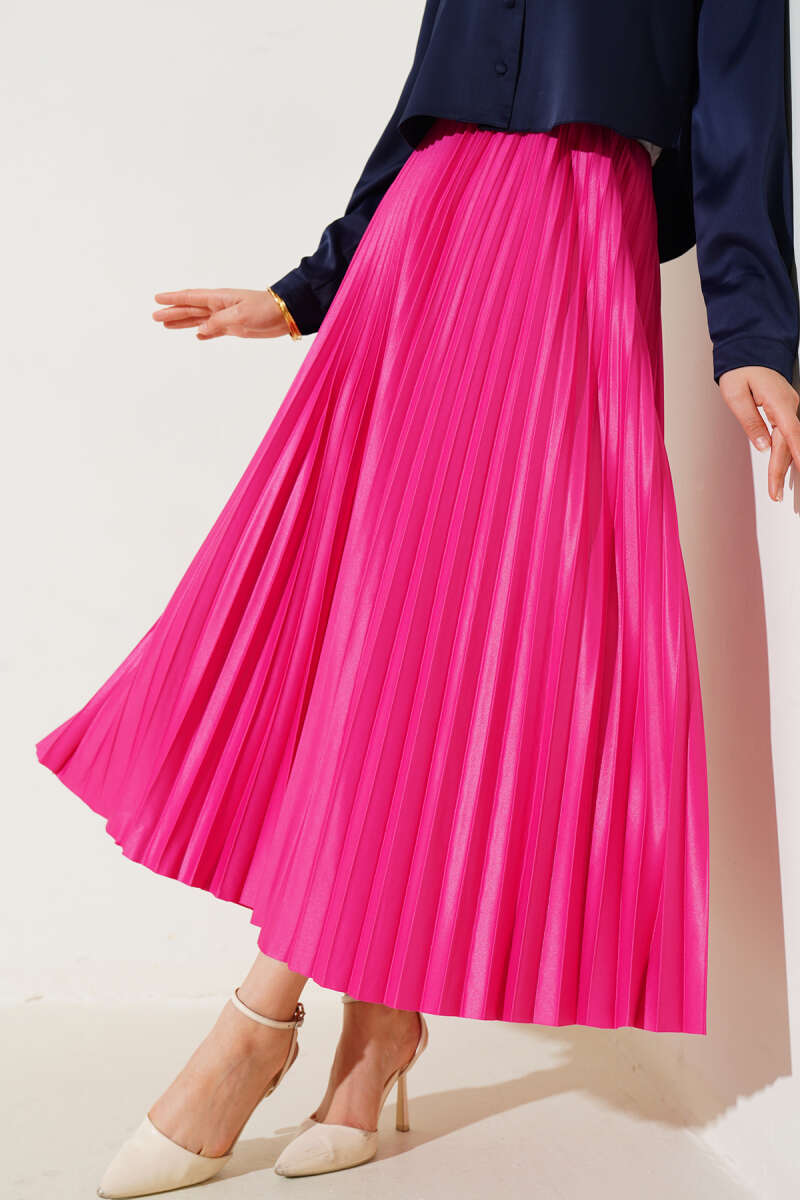 Beli Lastikli Saten Kloş Etek Kırmızı