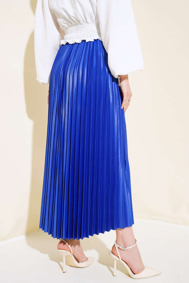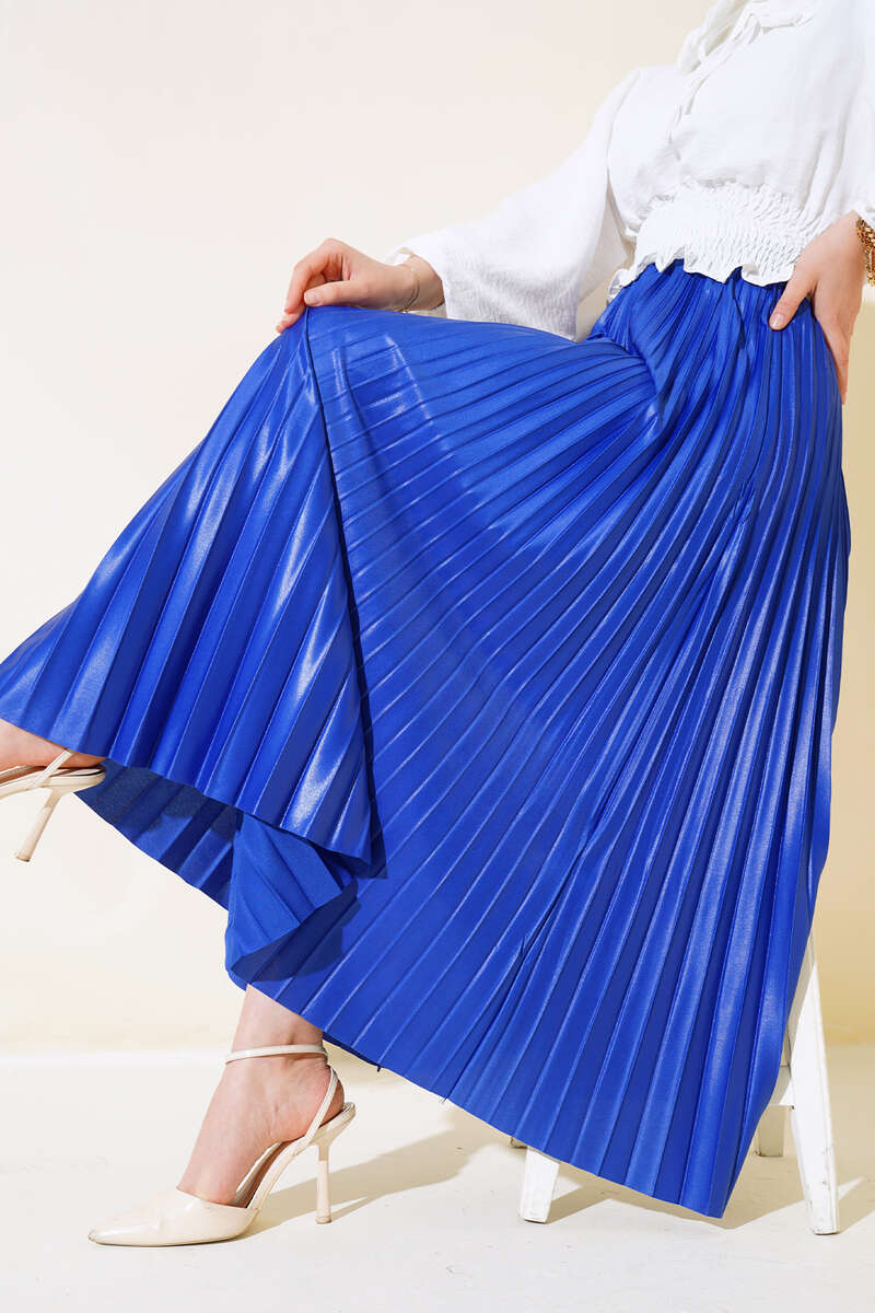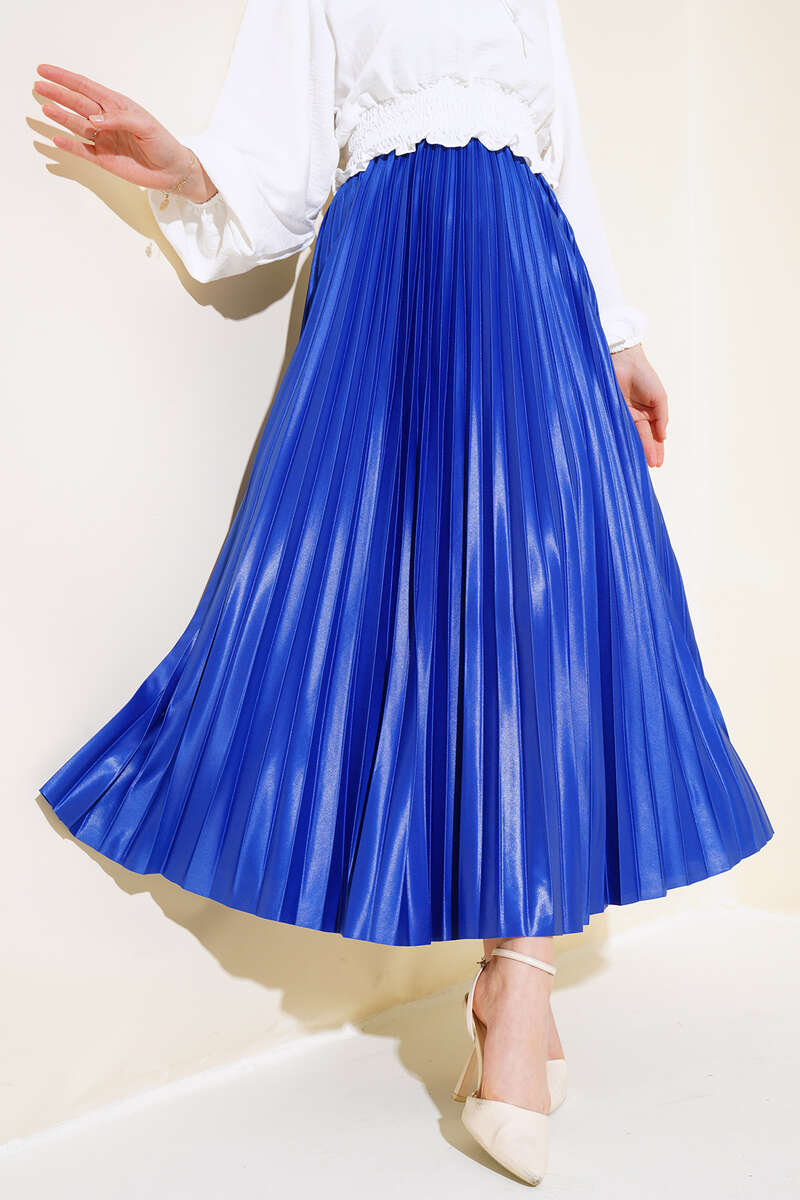 Yeni sezon pliseli eteğimiz deri görünümlü parlak kumaşıyla dikkat çekmektedir. Eteğimizin bel kısmı lastiklidir. Renk seçenekleri mevcuttur.