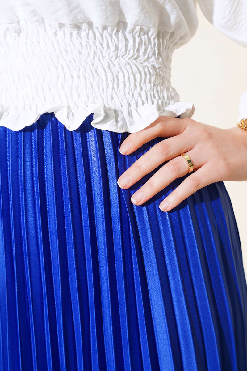 Beli Kemerli Lastikli Pileli Etek Lacivert