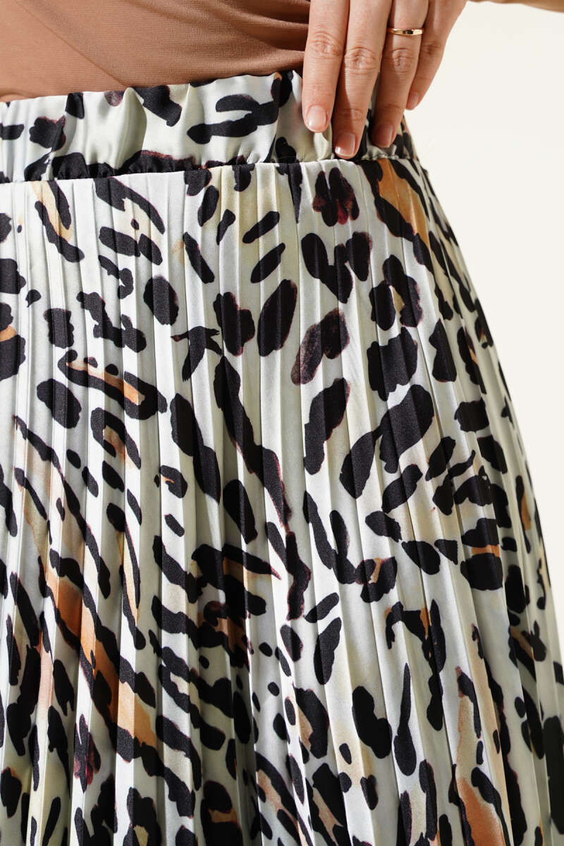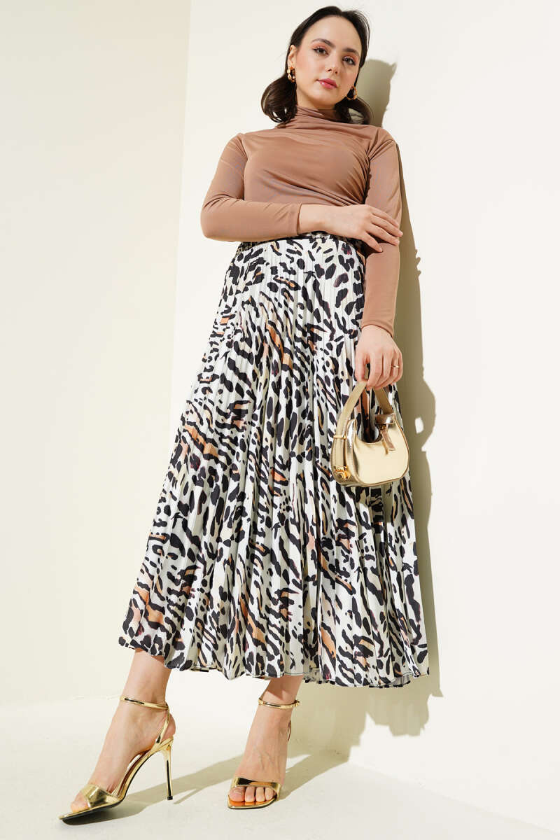 Saten Görünümlü Pileli Etek Bej
