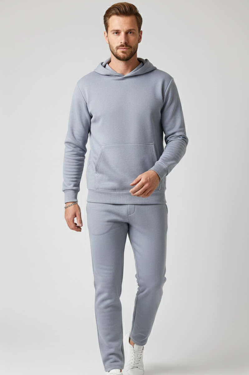 İki İplik Kapüşonlu Erkek Eşofman Takımı Mavi