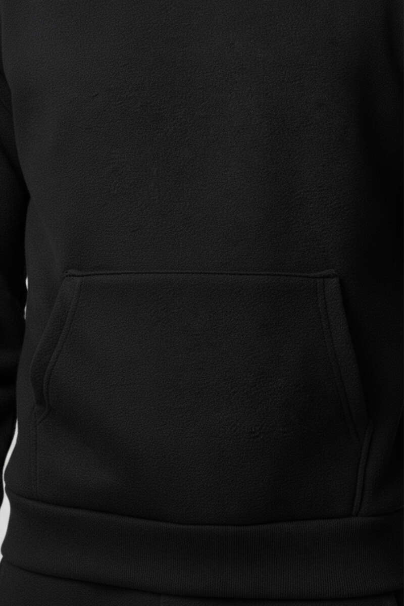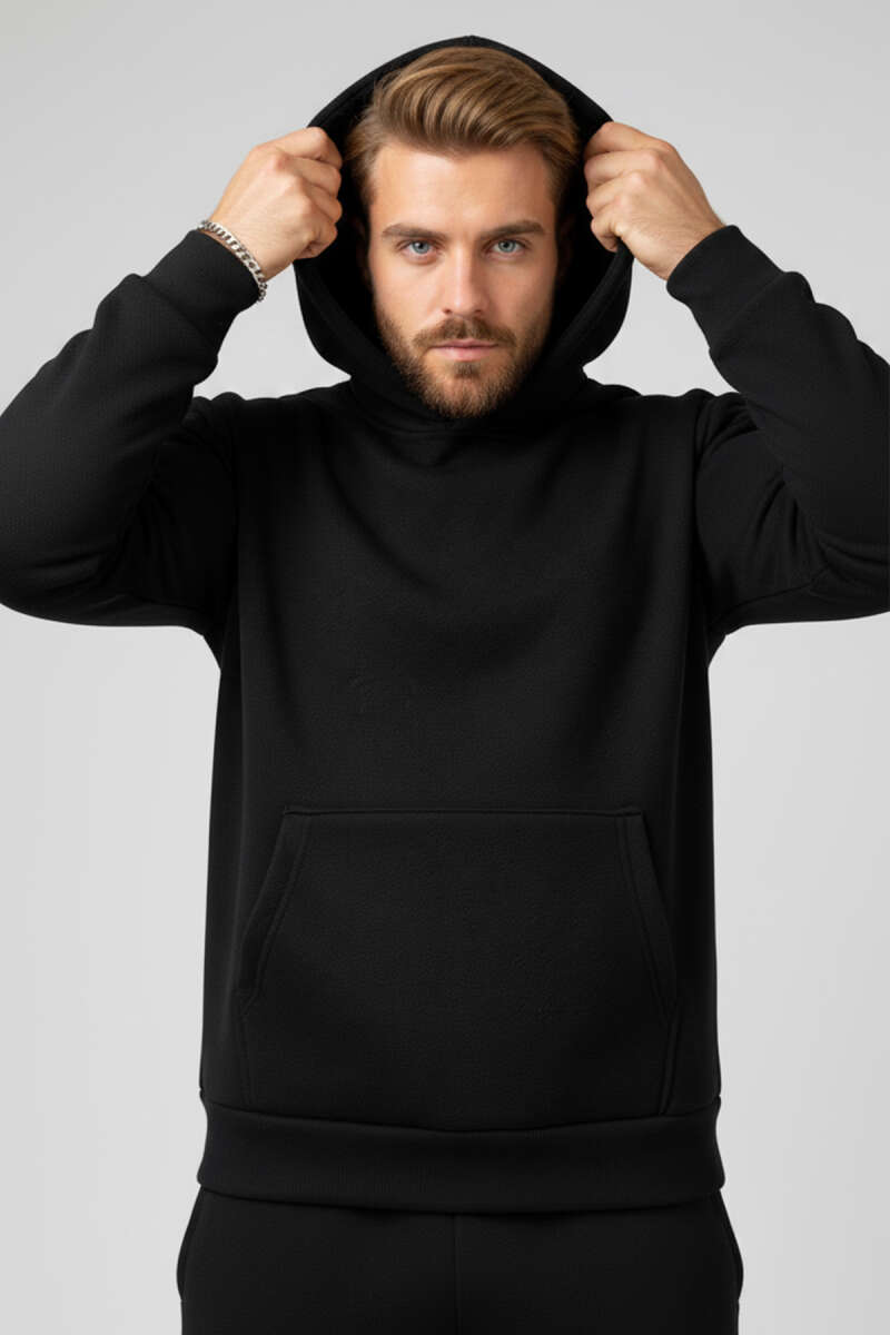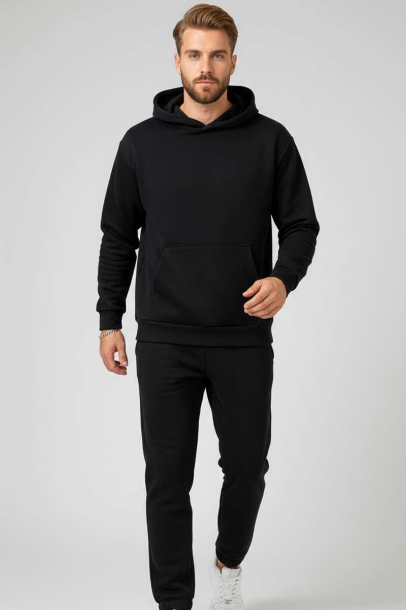 İki İplik Kapüşonlu Erkek Eşofman Takımı Siyah