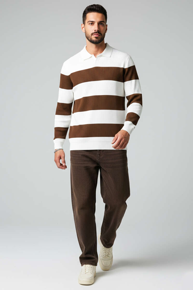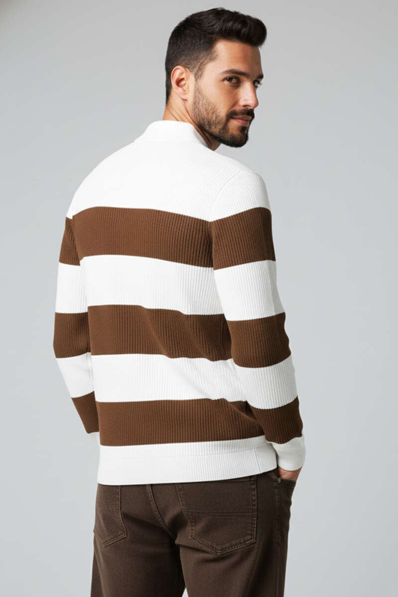 Dikey Çizgi Fitilli Erkek Triko Kazak Burgonya