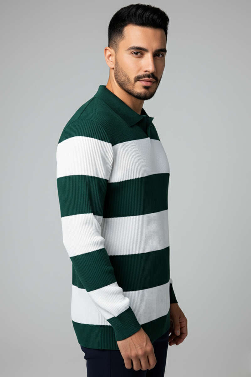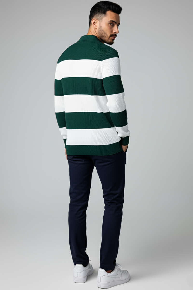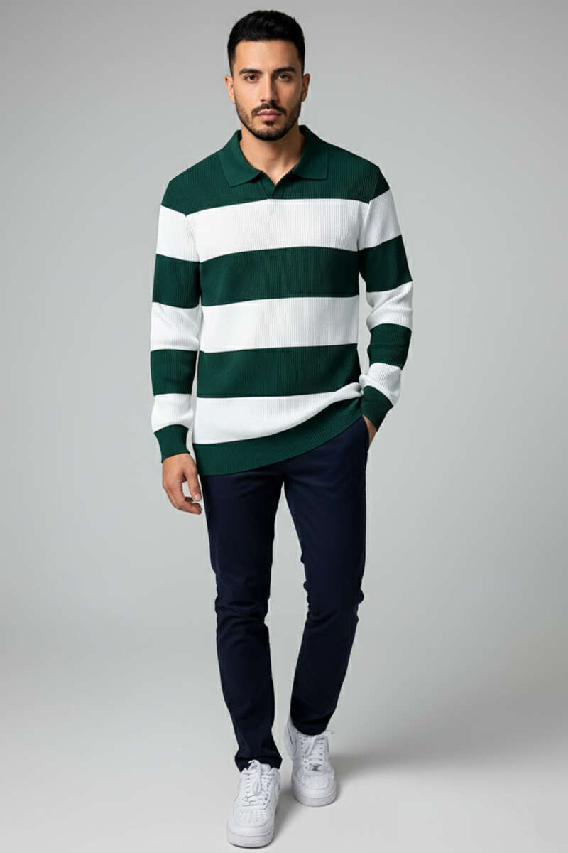 Dikey Çizgi Fitilli Erkek Triko Kazak Çağla Yeşili