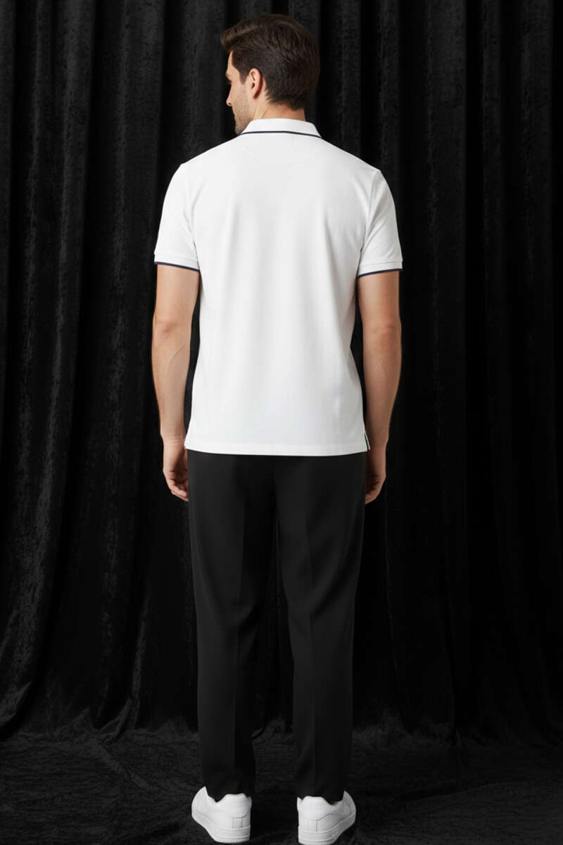 Yaka Fermuarlı Armalı Erkek T-shirt Beyaz