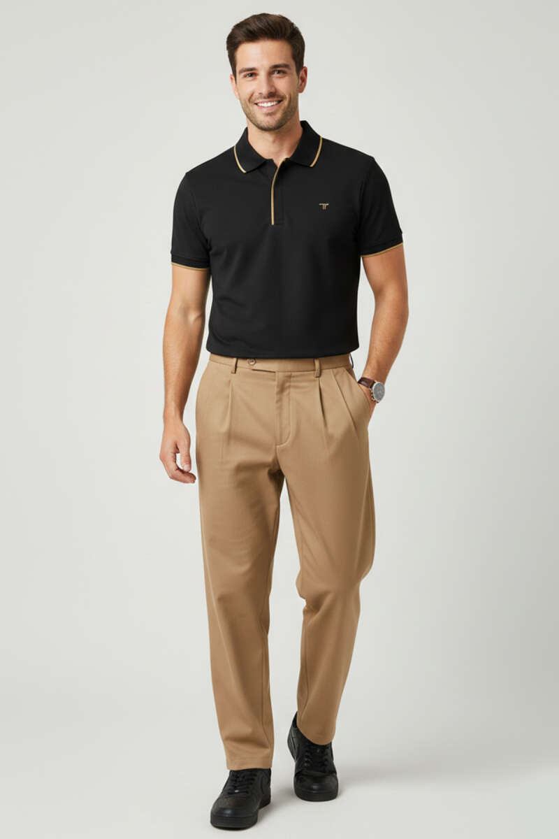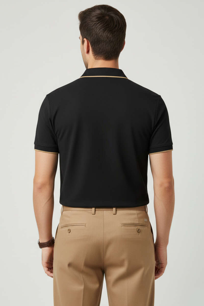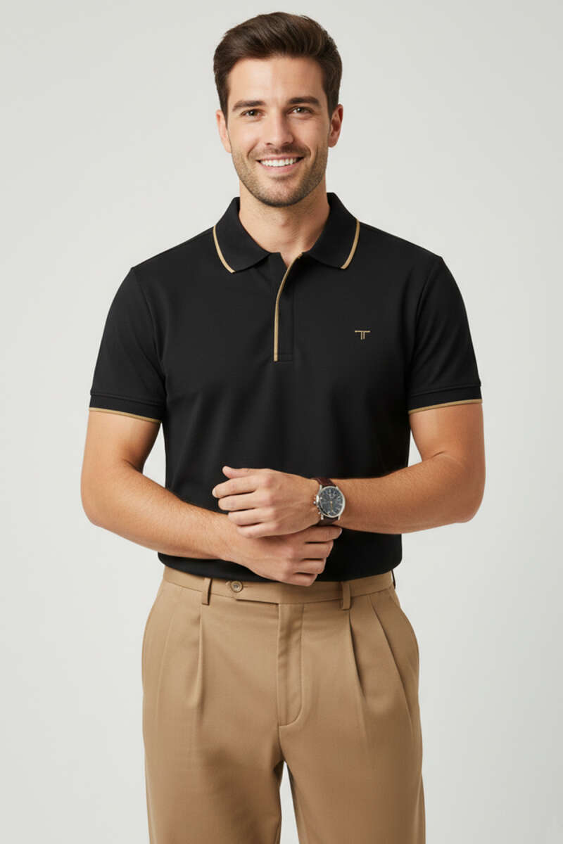 Polo Gizli Fermuarlı Erkek T-shirt Siyah