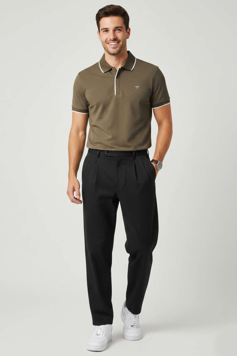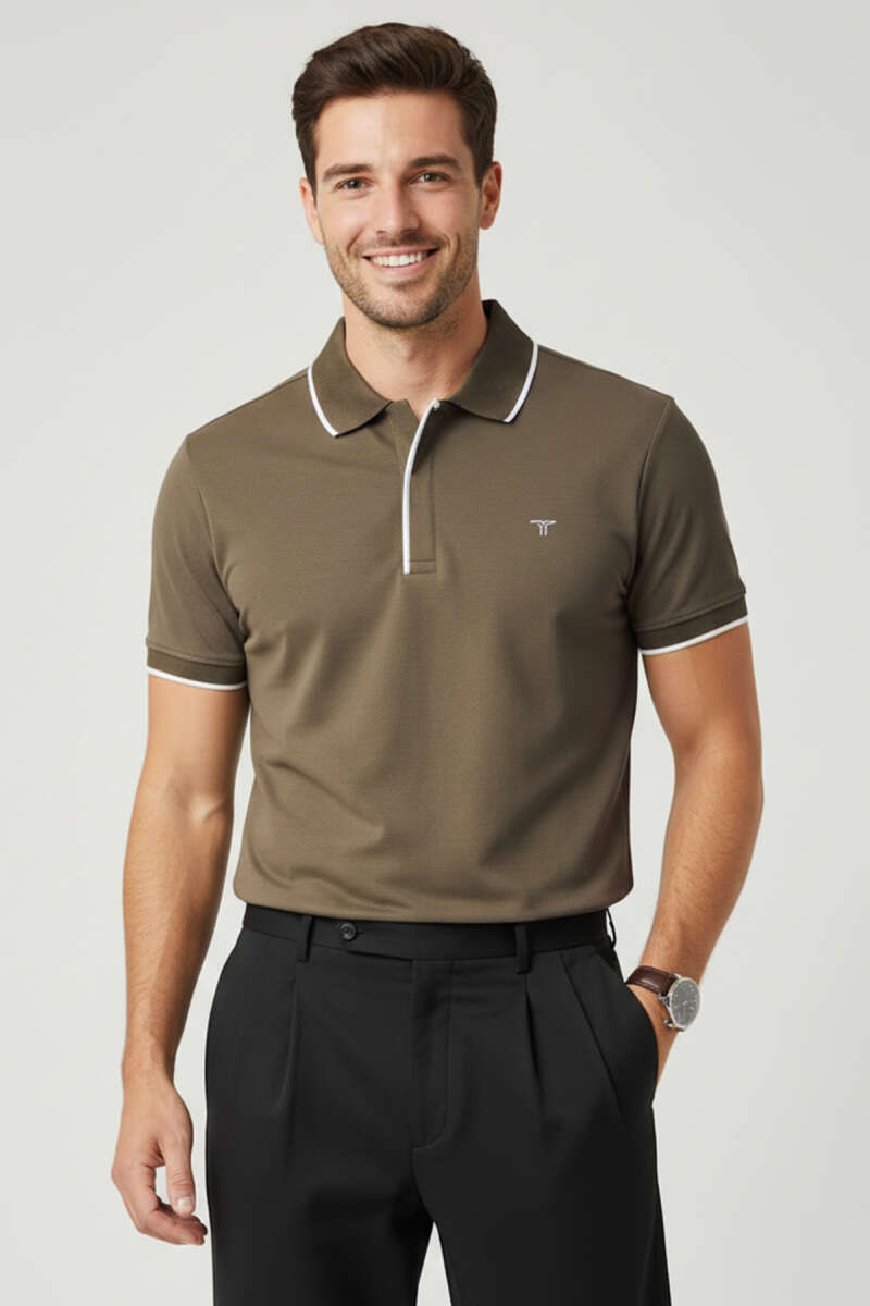 Polo Gizli Fermuarlı Erkek T-shirt Vizon