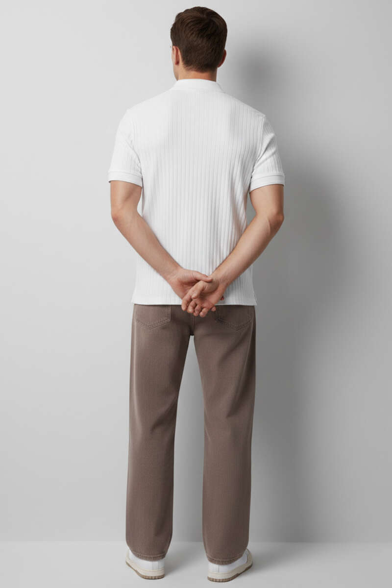 Polo Yaka Arma Detaylı Erkek T-shirt Beyaz