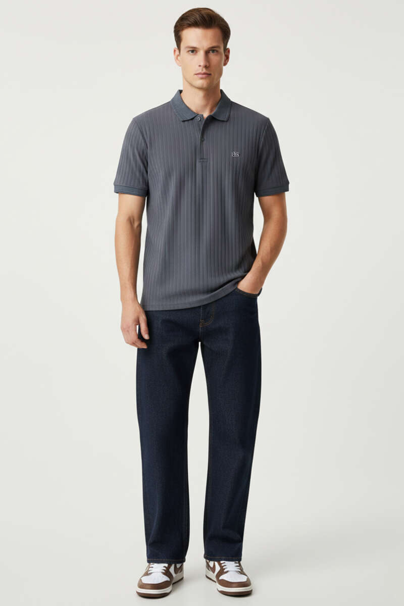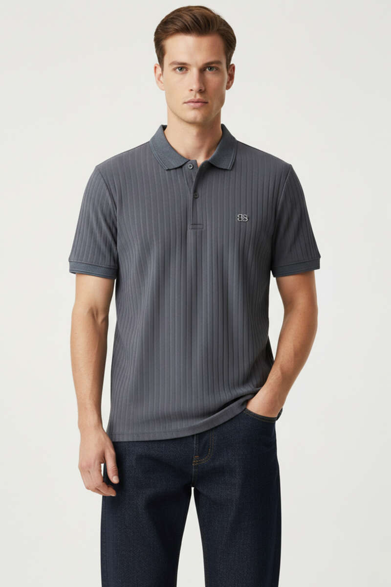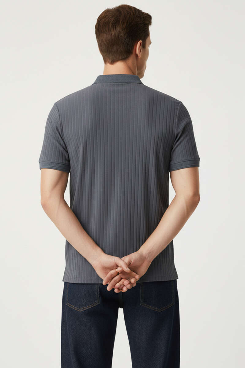 Polo Yaka Arma Detaylı Erkek T-shirt Füme