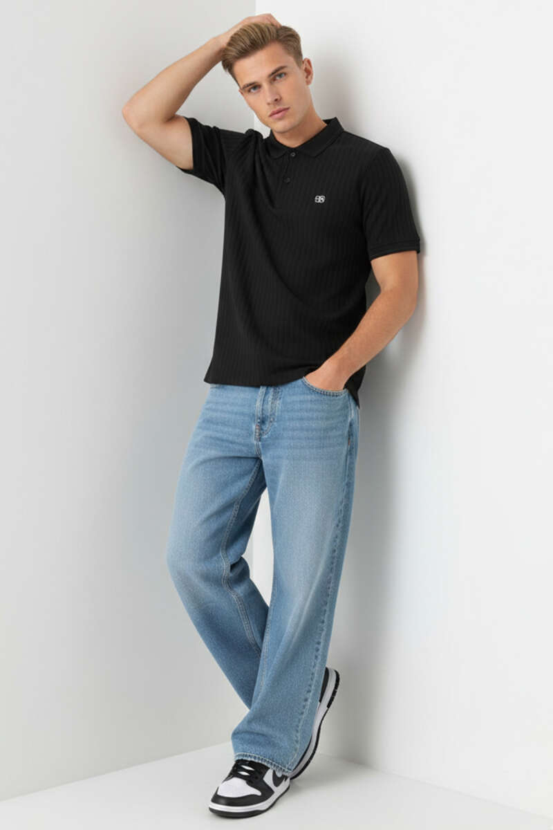 Kabartma Desenli Erkek T-shirt Siyah
