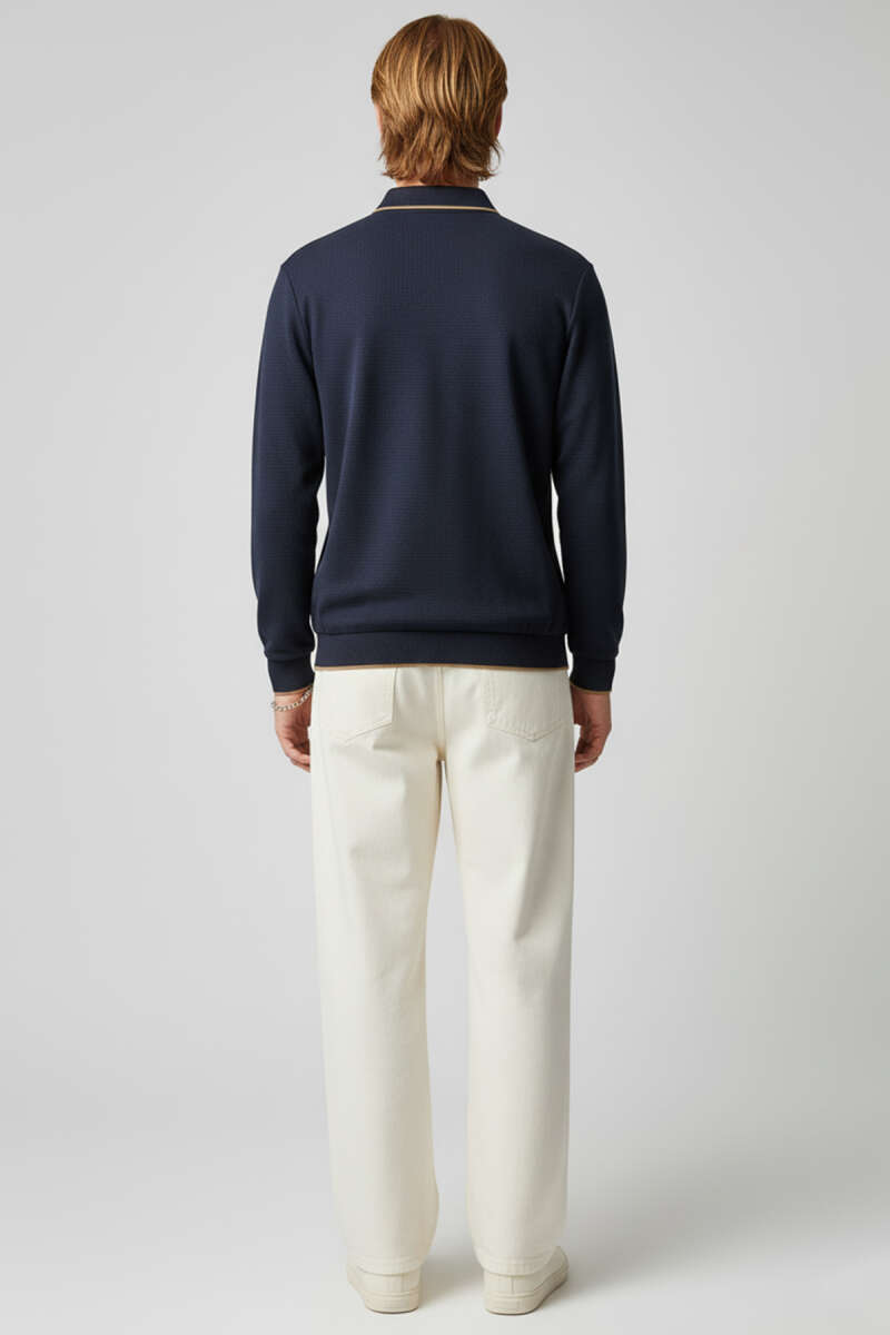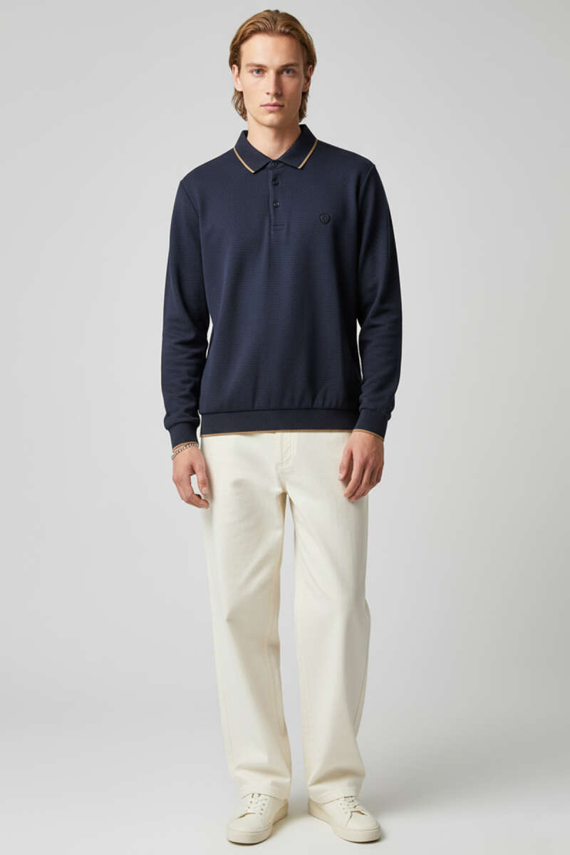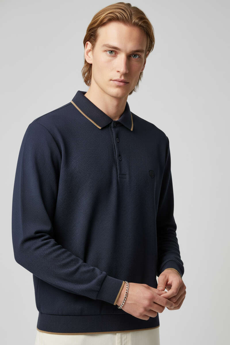 Polo Yaka Armalı Waffle Sweatshirt Lacivert