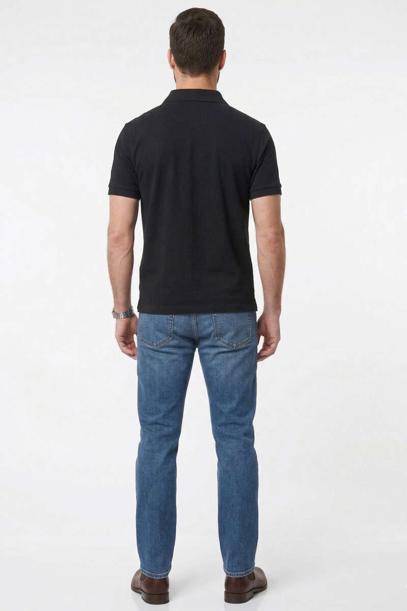Polo Yaka Basic Tensel Erkek T-shirt Siyah
