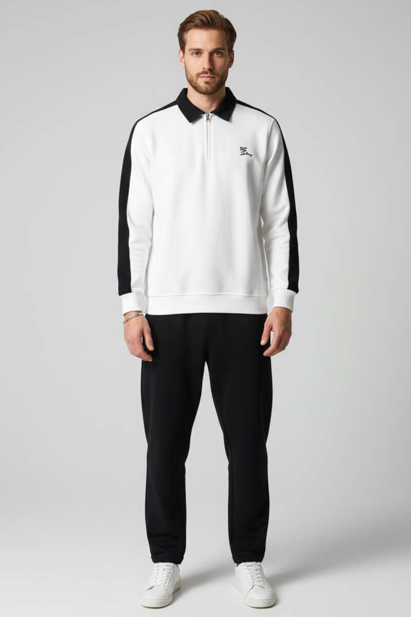 Üç İplik Bisiklet Yaka Erkek Sweatshirt Ekru