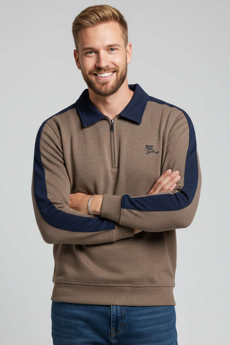 Gömlek Yaka Üç İplik Erkek Sweatshirt Lacivert