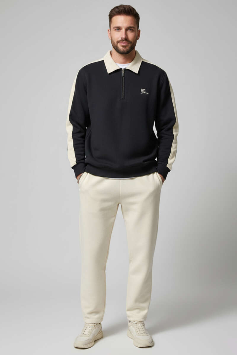 Üç İplik Bisiklet Yaka Erkek Sweatshirt Ekru