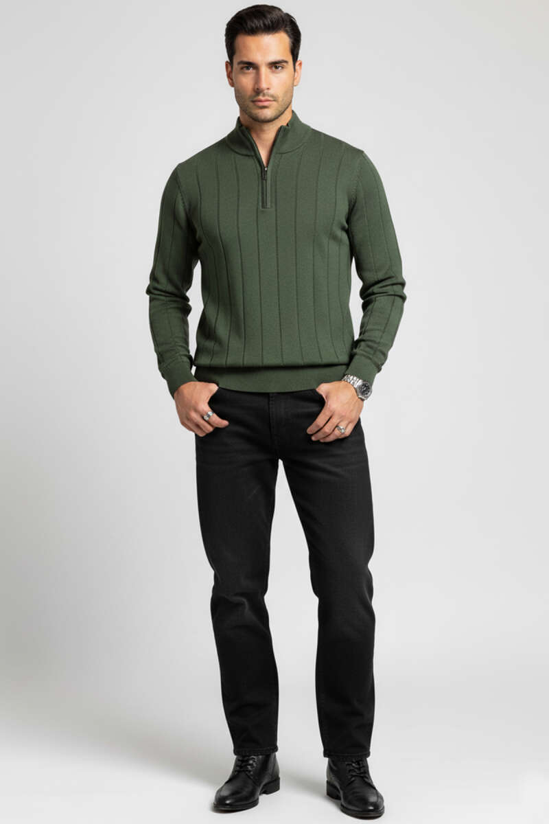 Yaka Fermuarlı Triko Erkek Kazak Siyah
